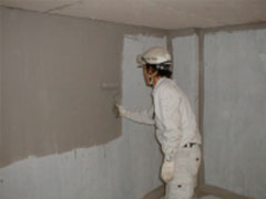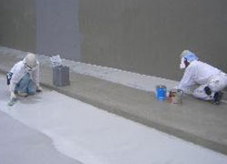 水道用コンクリート水槽など、水質の保持を必要とする場所では専用のライニング材を使用します。専用のライニング材は優れた機械的強度・接着力・耐水性・耐薬品性を有するとともに、日本水道協会企画「JWWAK143:1997」に対応した工法で水道水に対する臭気の影響や衛生性について安全性が確認された工法です。