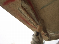 鉄筋の発錆によりコンクリートがひび割れたり、落下しそうな部分は放置しておくと第三者災害の恐れがあり、大変危険です。強度が高く、接着性に優れた樹脂モルタル(エポキシ樹脂系;ポリマーセメント系)で補修します。