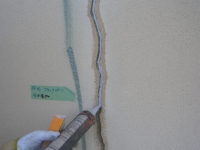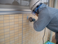 コンクリートやモルタル(タイルの場合はタイルを撤去して行います。)などひび割れをダイヤモンドカッターでU字型にカットし、シーリング材を充填する工法です。防水性が高くひび割れの動きにも追従します。