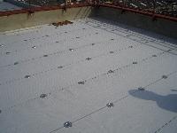 シートを重ね合わせ繋いでいくシート防水には、塩ビシートとゴムシートがあります。比較的長い耐久年数を持ちます。改修工事では最近塩ビシートで施工する場合が多くなっています。