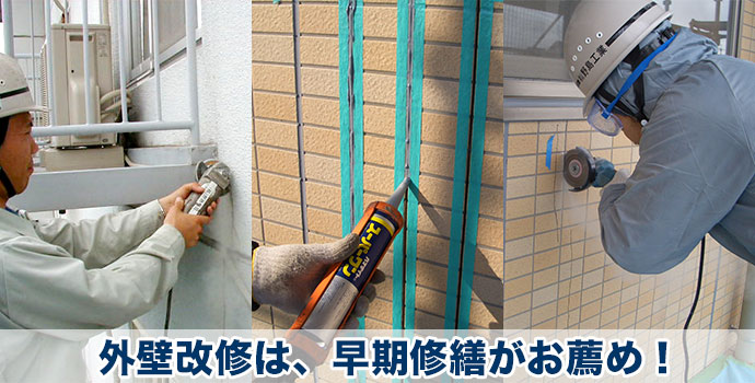 外壁改修工事とは鉄筋コンクリート構造又は鉄骨鉄筋コンクリート構造においてひび割れ、鉄筋の膨張による爆裂(欠損)、外壁の剥離等を補修する工事、屋根や外壁などが劣化すると、建築物の耐久性が低下し外壁などが破片などが落下すると、通行人やその他の工作物等に、危害を与えてしまう事が有りますので耐久性を保つためにも外壁の改修工事を行います。